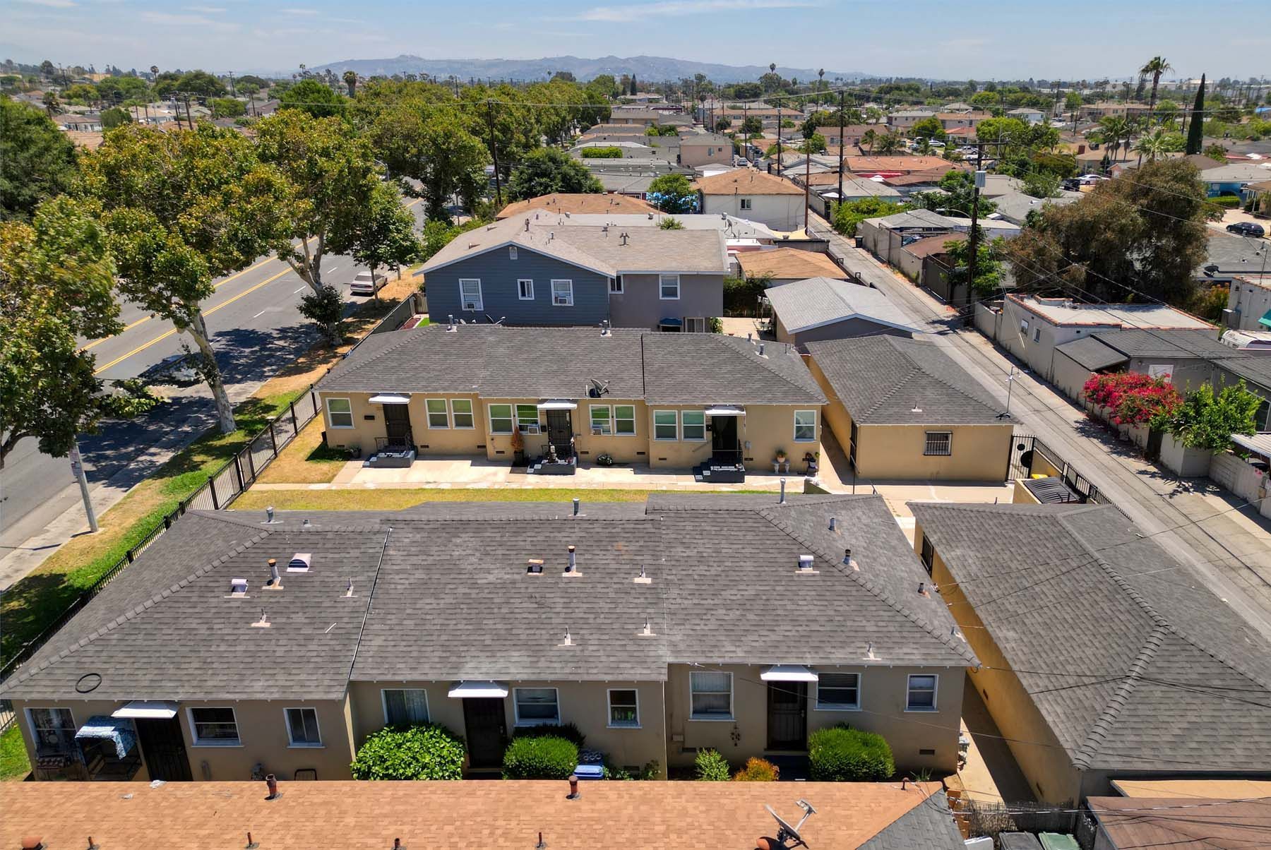 6 Single Story Units in East Los Angeles — Two Side-by-Side Triplexes: First time on the market in over 51 years, this pride-of-ownership offering features two side-by-side triplexes nestled just two blocks from Montebello in a prime East Los Angeles location. Set on a generous 9,674 SF lot spanning two separate parcels and zoned LCR3YY, the property presents exciting potential for future ADU development. Each building offers spacious, single-story 1-bedroom, 1-bath units with many recent capital improvements, including upgraded electrical systems. Residents enjoy a charming garden-style setting with secured entry and garage parking for all units, while a Walk Score of 77 underscores the area's vibrant, walkable lifestyle. Ideally positioned near the Citadel Outlets and offering convenient access to the 5, 60, and 710 freeways, this investment opportunity benefits from strong rental upside and qualifies for residential financing. The property is subject to the Unincorporated Los Angeles County Rent Ordinance.