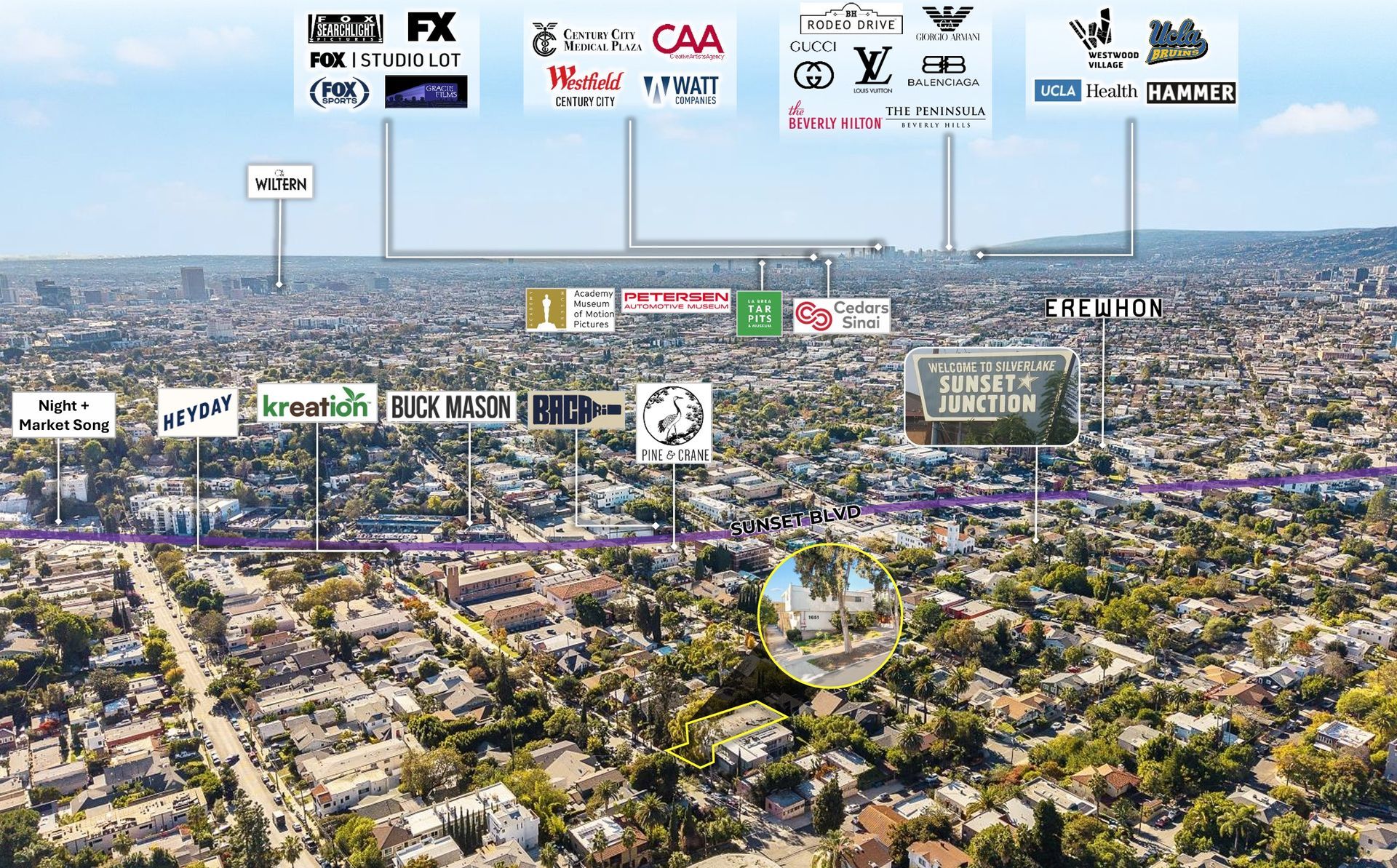- Prime Walkable Location | Nestled on a Residential Street Allowing for Above-Market Rents | Walking Distance to Sunset Junction & Local Favorites Including: Intelligentsia, La Colombe Coffee, San To, Wasteland, Silver Lake Farmers Market, Tartine, Sweetgreen, Indigo, Bacari, Maison Kitsuné Paris, Café Stella & Kombu Sushi
